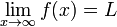 Limit as x approaches c of f(x) is L.